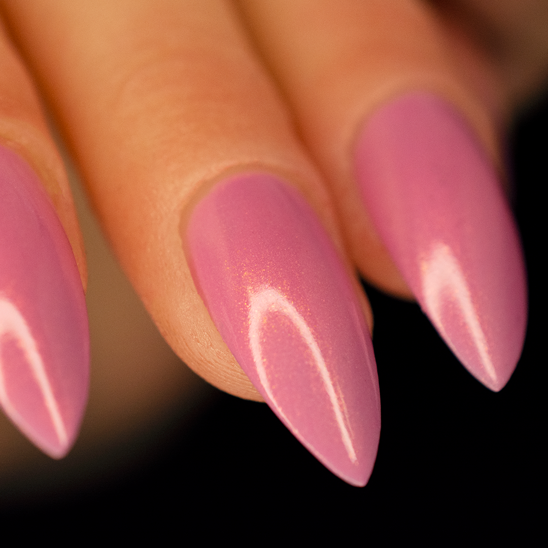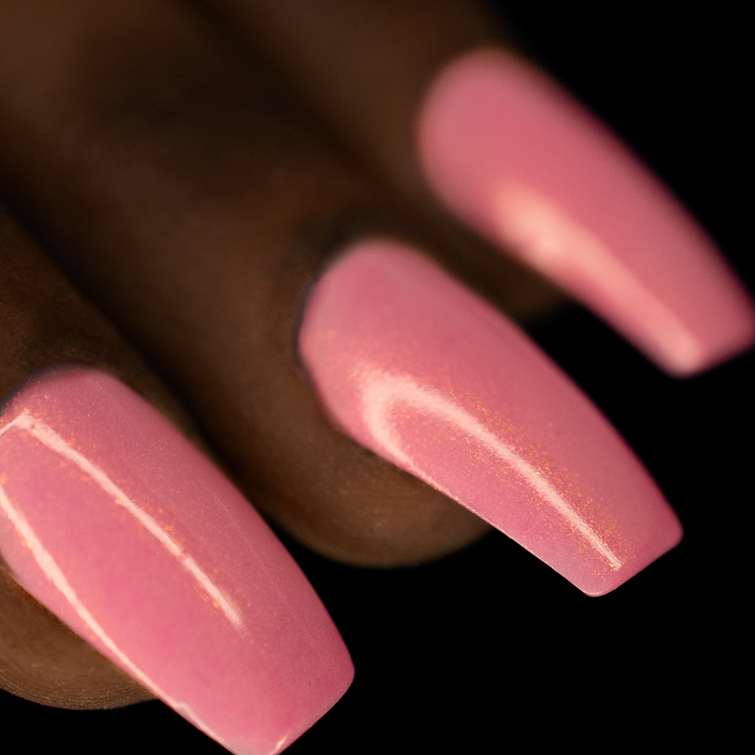 Sweetheart is a dreamy ballerina pink nail polish that adds the perfect touch of romance to your manicure, featuring a delicate gold shimmer that shifts into captivating red tones.